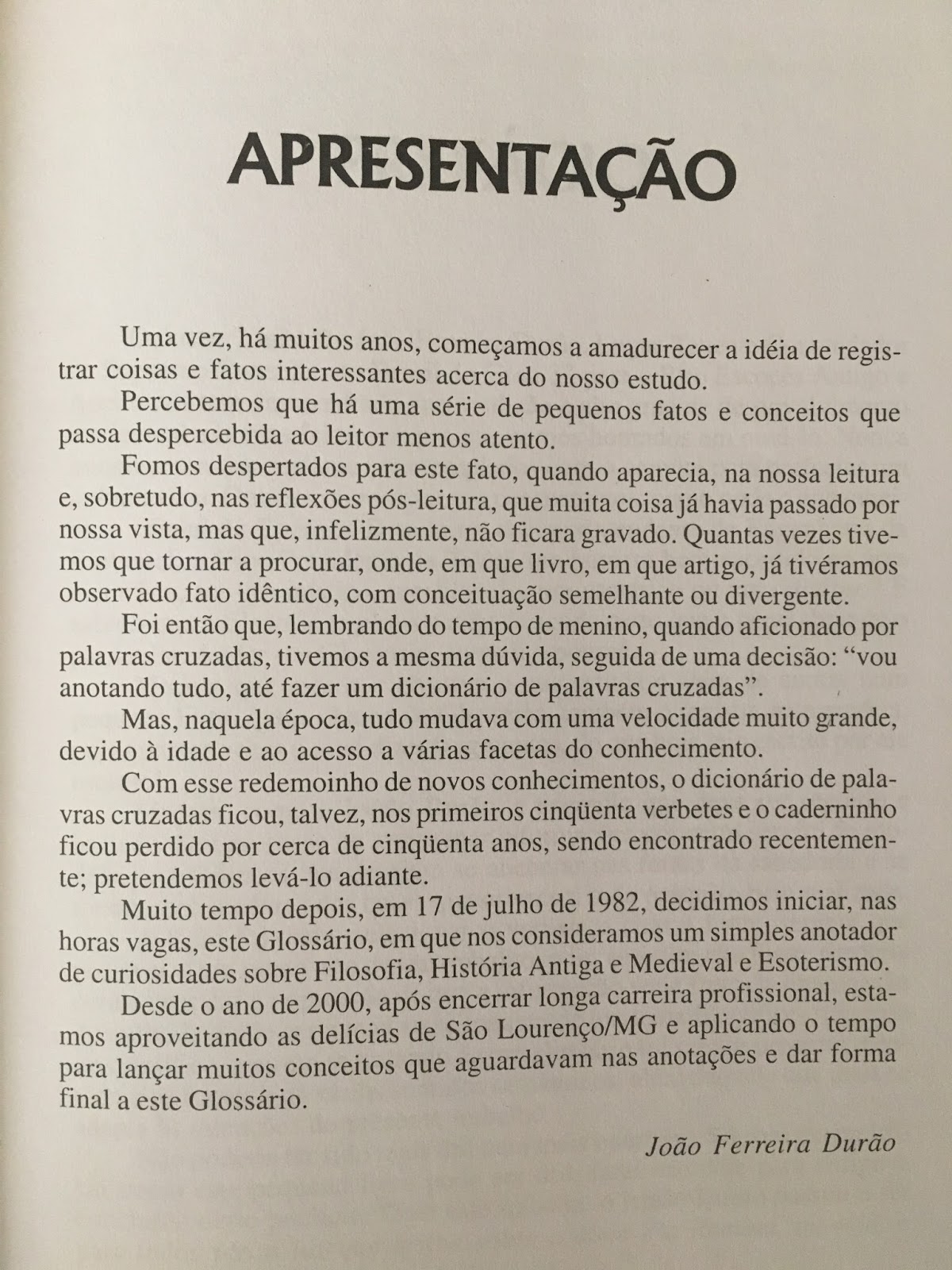 PEQUENO GLOSSÁRIO DE FILOSOFIA, ESOTERISMO, HISTÓRIA ANTIGA E MEDIEVAL - JOÃO FERREIRA DURÃO